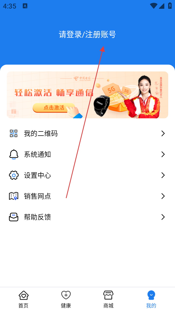 2、进入登录引导页,点击顶部【请登录/注册账号】,进入登录选择界面。