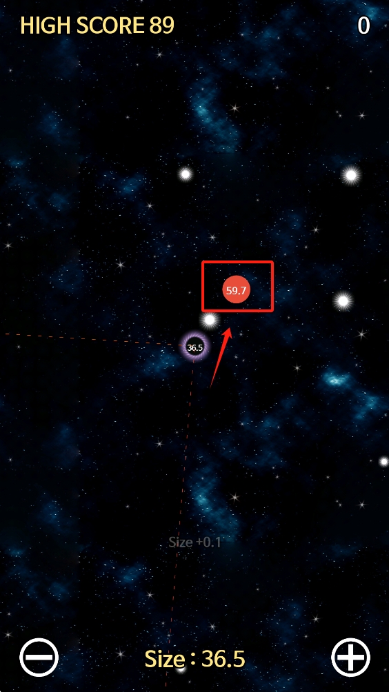 2、控制一个小黑洞在太空里漂,看见闪光的能量点就赶紧吃掉,身体就会慢慢变大。
