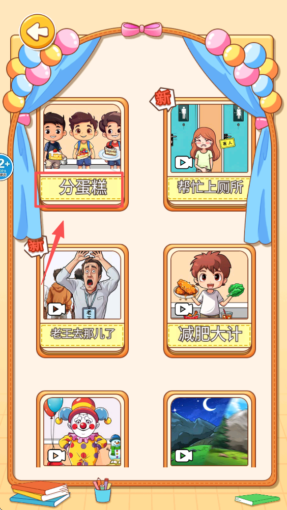 2、在游戏主界面选择“分蛋糕”关卡,适合新手玩家尝试并挑战自己的逻辑思维能力。