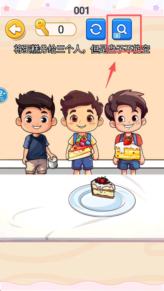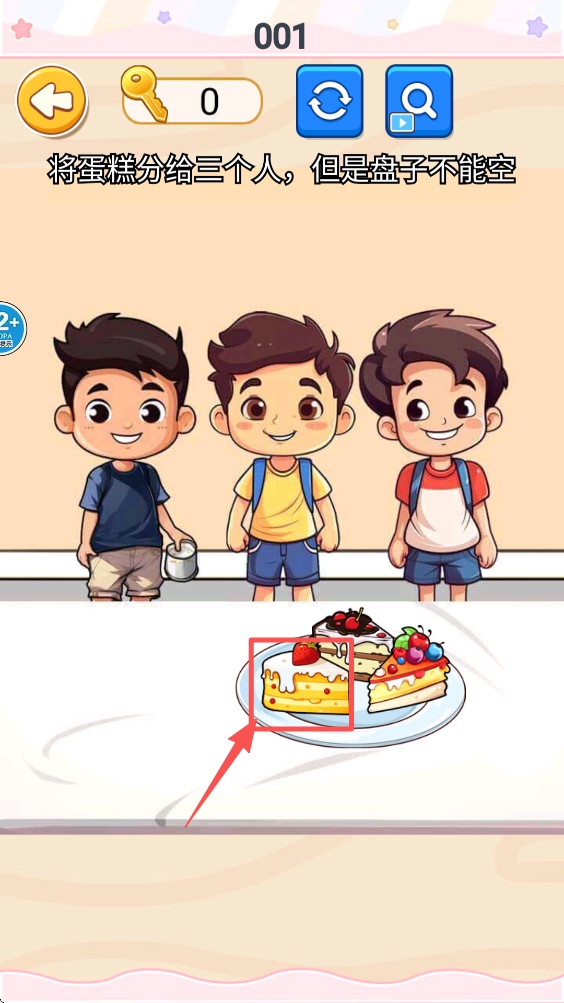 3、观察题目要求,将蛋糕分给三个人,确保你明白游戏的目标是什么。