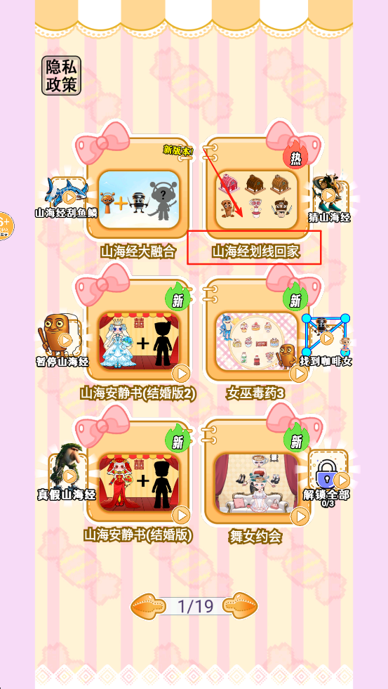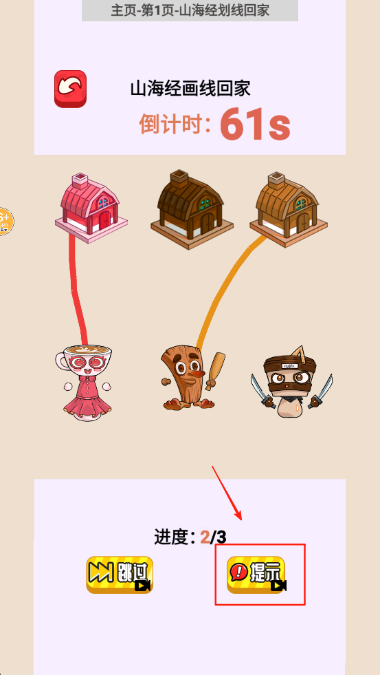 1、在游戏大厅界面,选择“山海经划线回家”游戏,点击进入。