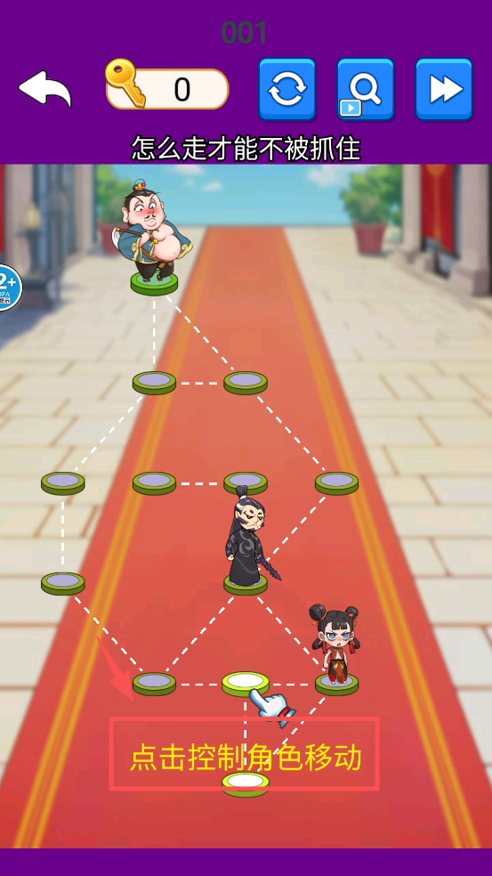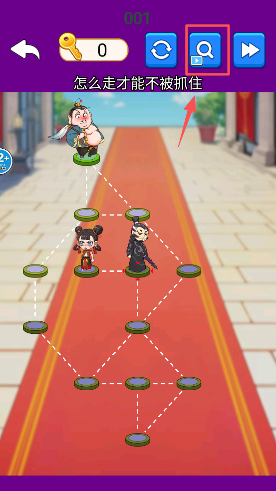 4、在遇到难题时,点击右上角的放大镜图标,使用道具帮助角色解决问题,继续前进。