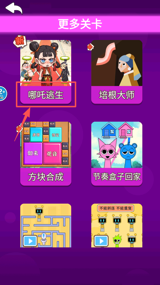 2、在“更多关卡”界面,选择你想要挑战的关卡,如“哪吒逃生”,开始你的游戏。