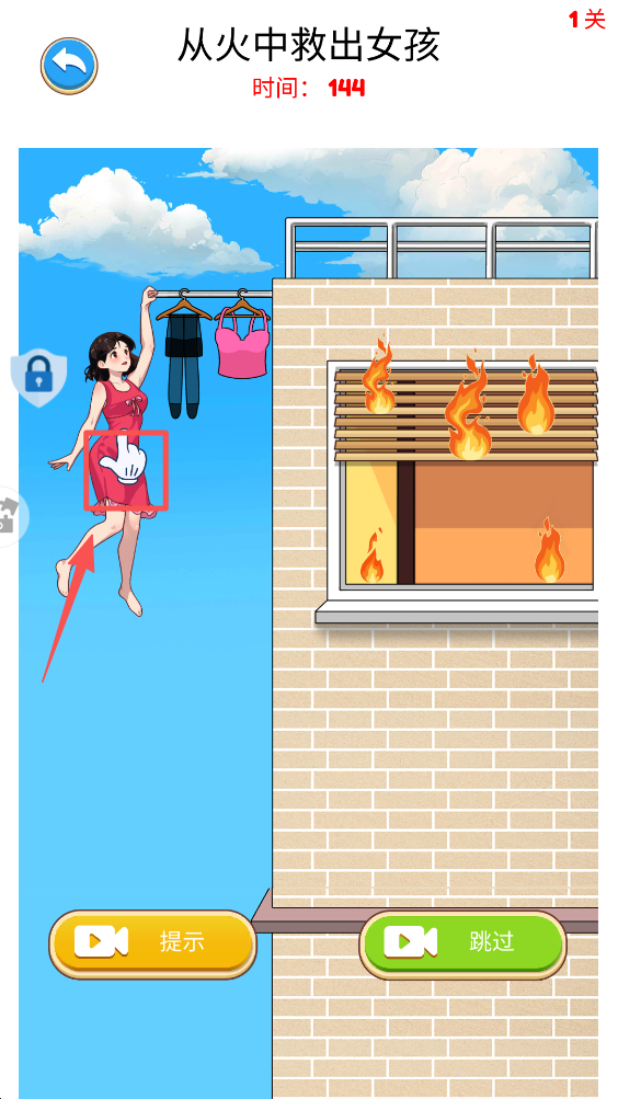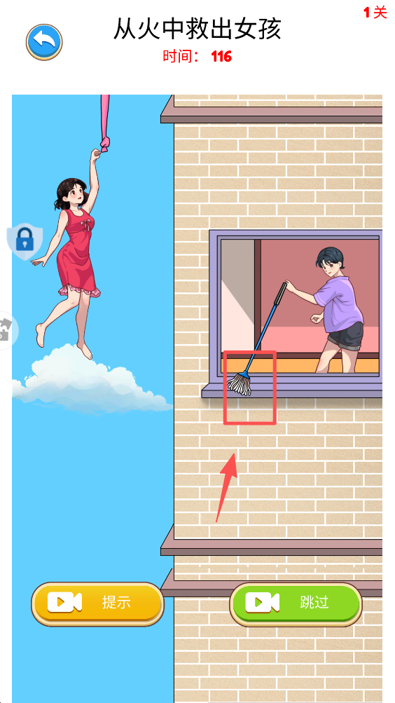 3、拖动扫把至适当位置,尝试解救被困的女孩,完成关卡目标。