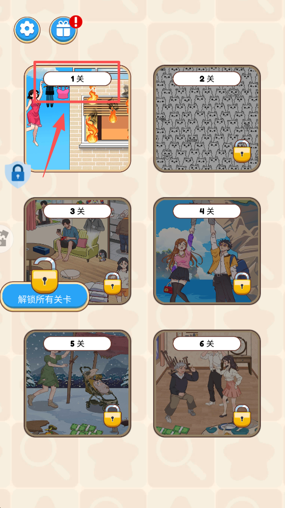 1、点击“1关”进入游戏关卡,开始你的解谜挑战。