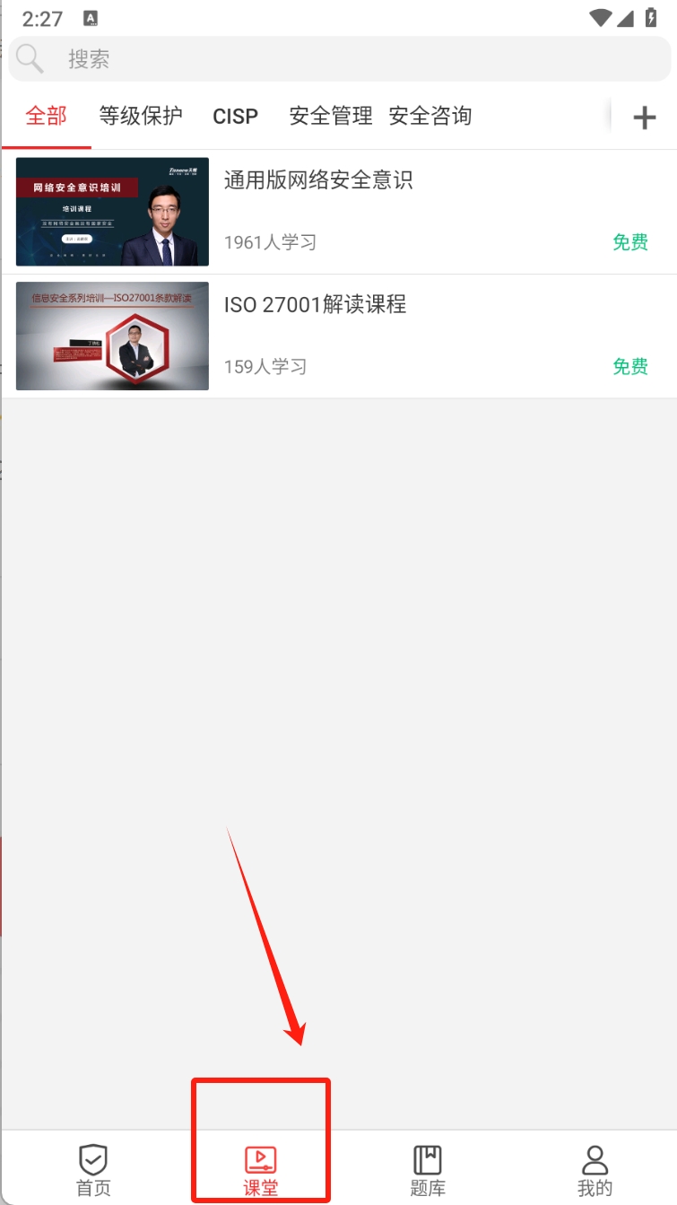 2、选择课程开始学习,在课程页面,选择感兴趣的课程如“通用版网络安全意识”,点击开始学习。