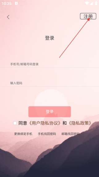 3、进入注册界面输入手机号和密码即可注册。