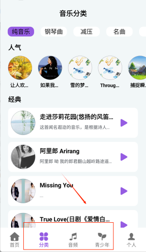 2、在音乐库可以浏览按风格分类的热门歌曲,也可以通过搜索框输入歌名、歌手或歌词来查找特定音乐,搜索结果会按相关度排序显示。