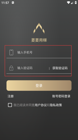 2、进入登录界面输入手机号和验证码。