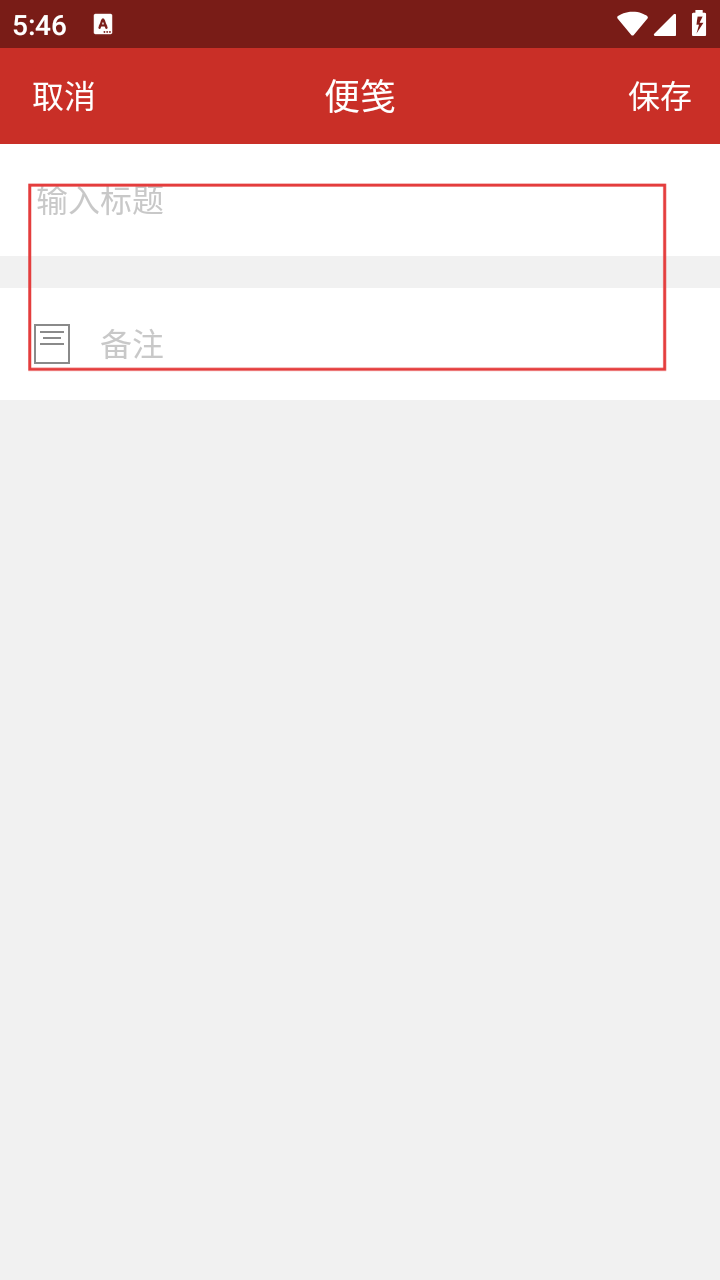 4、在便笺编辑页面,输入标题和备注后,点击【保存】,即可添加新的记事备忘。