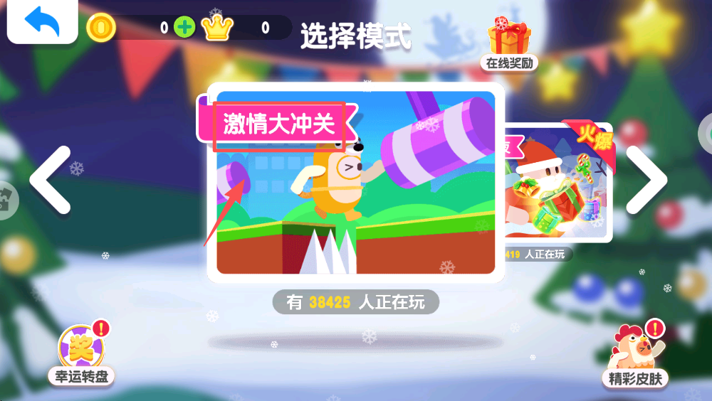 2、在模式选择界面,点击“激情大冲关”按钮,选择你想要进行的游戏模式。