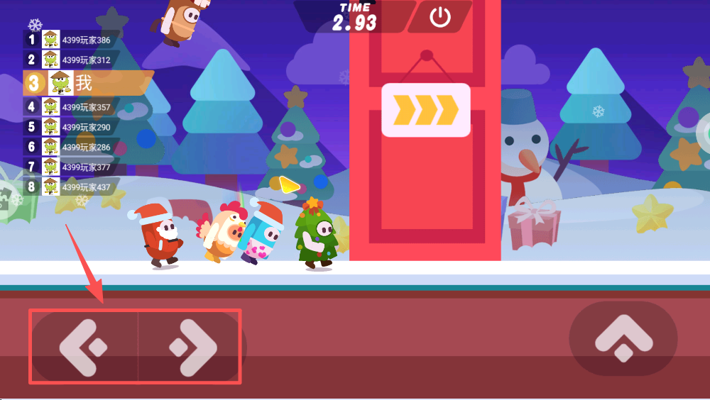 4、在游戏进行中,通过点击左右箭头按钮来控制角色移动,避开障碍。