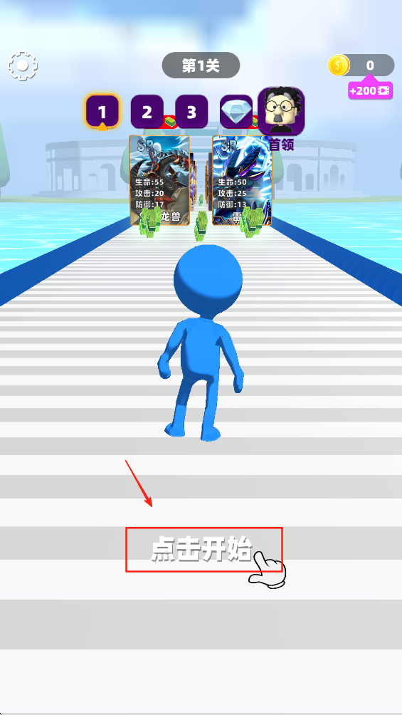 1、点击“点击开始”按钮,进入游戏,选择你的卡牌开始战斗。