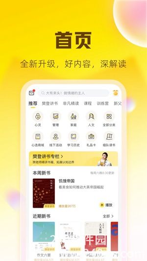 安卓樊登读书手机官方版下载安装是一款主打讲书的手机阅读类软件,以通俗易懂的方式为读者们提取讲解书中的精华,让读者能够以最好的时间收获到最丰厚的有用的知识来全面提高自己的阅读境界。樊登读书手机官方版下载安装这里对于图书有着详细的分类,我们能够轻松快速找到自己感兴趣的内容,支持大家加入收藏,也能够一键分享给好朋友。在阅读的时候,软件也为我们提供了不少实用的功能能够让我们享受到最舒适的阅读体验呢,支持大家自定义设置阅读背景,字体大小,屏幕亮度,还能自适应屏幕大小哦,快来试试看吧~