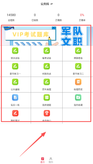1、首先在手机商店搜索并下载军队文职鸣题库,注册完成后进入主页,准备好开始你的学习旅程。