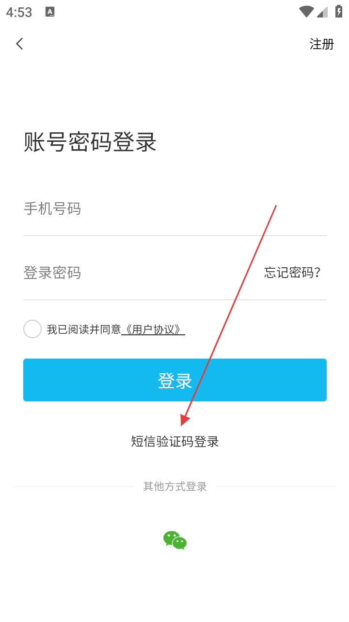 2、跳转至登录页面,选择【短信验证码登录】。