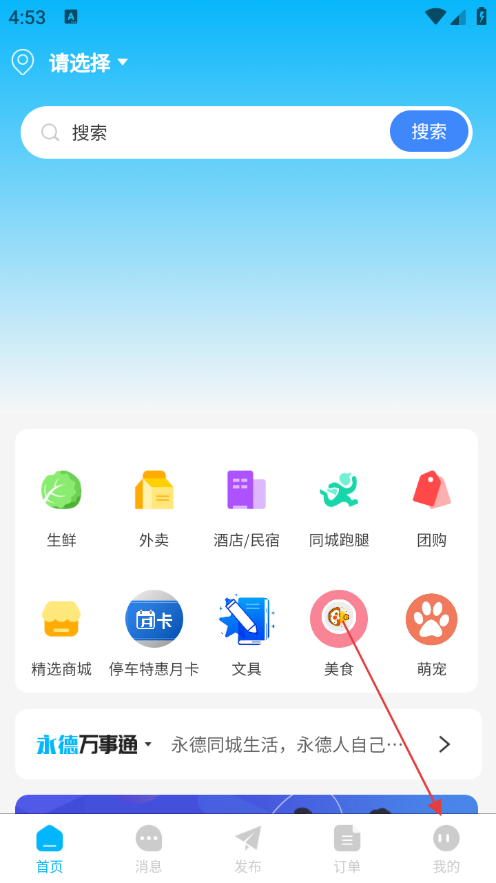 1、打开永德同城生活进入首页面,点击底部【我的】。