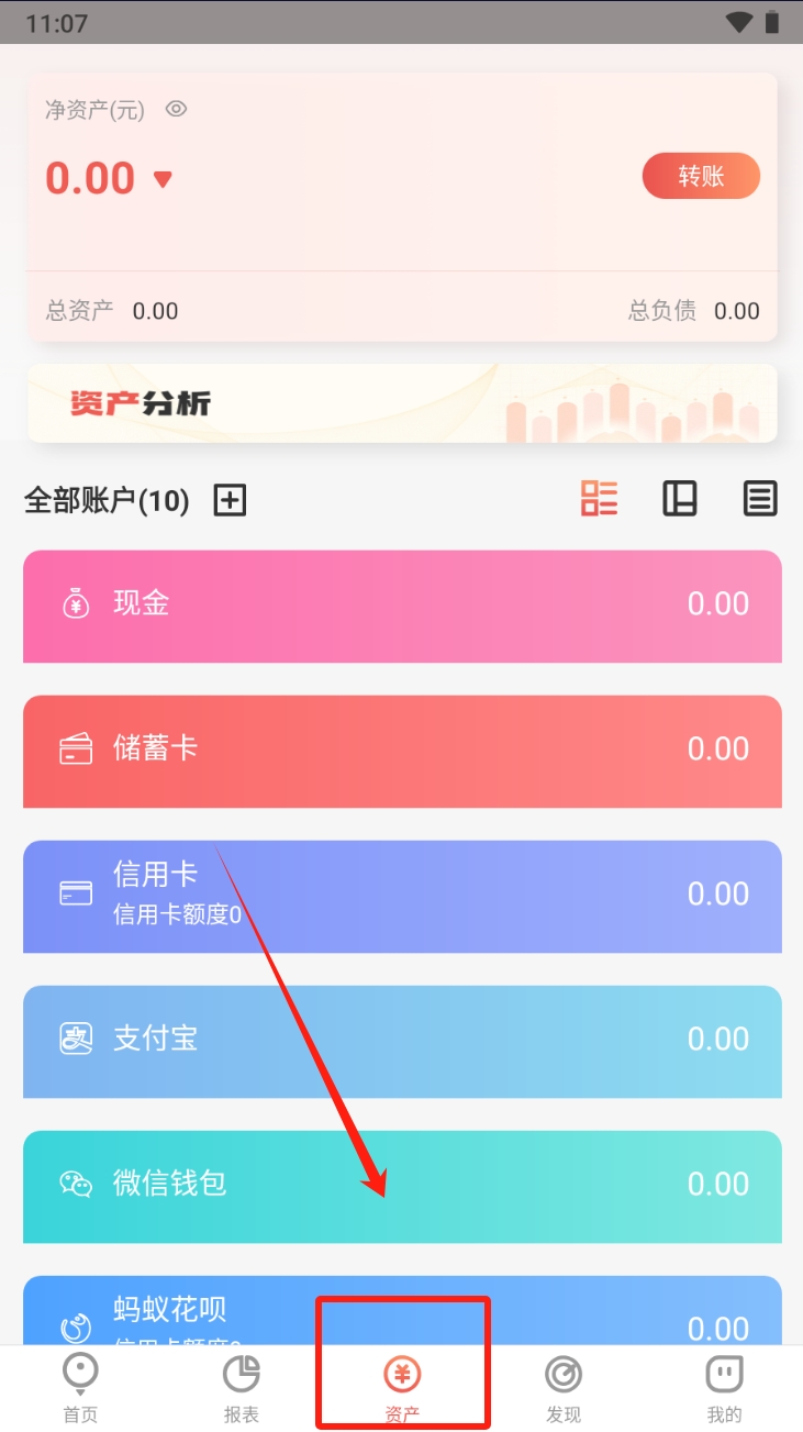 3、点击“资产”图标查看并管理您的资产账户和净资产。