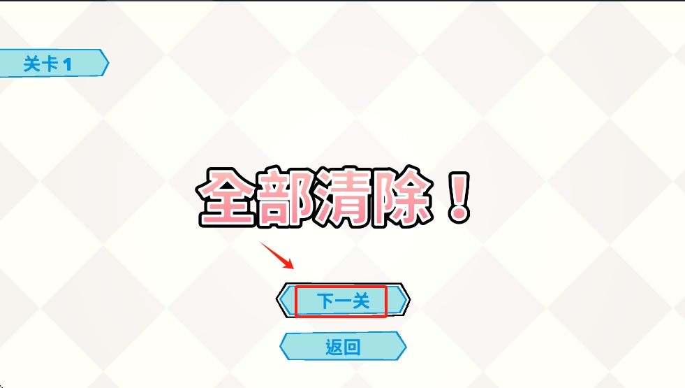 3、完成关卡一后,点击“下一关”按钮,进入下一关卡。