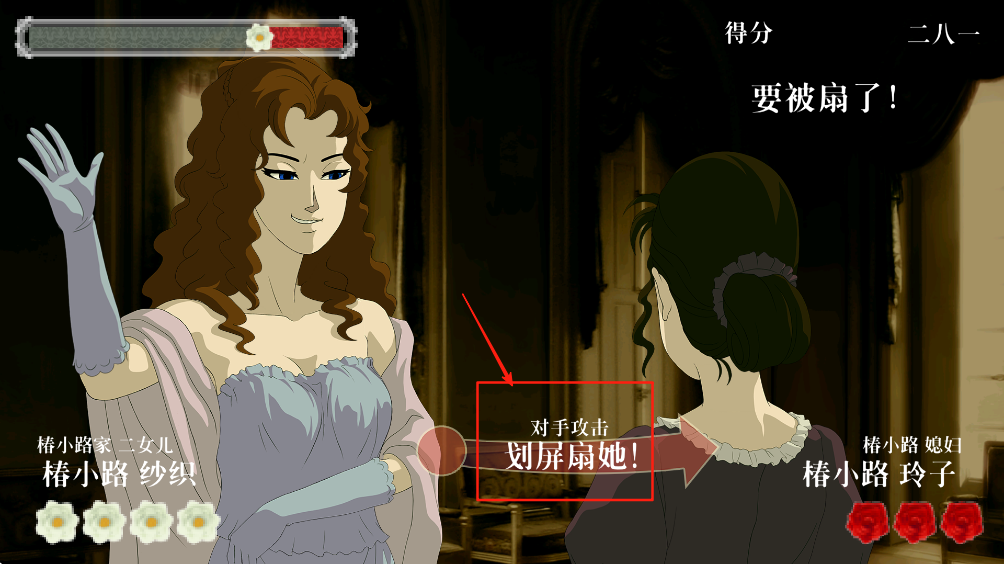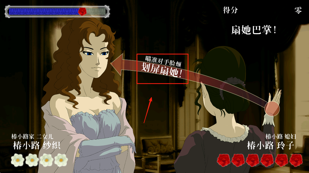 3、在战斗界面,瞄准对手脸颊,划屏扇她以进行攻击。