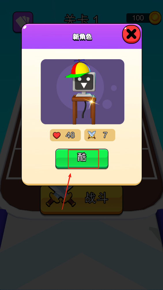 4、战斗胜利后,点击“酷”按钮,解锁新角色,增强你的战斗队伍。