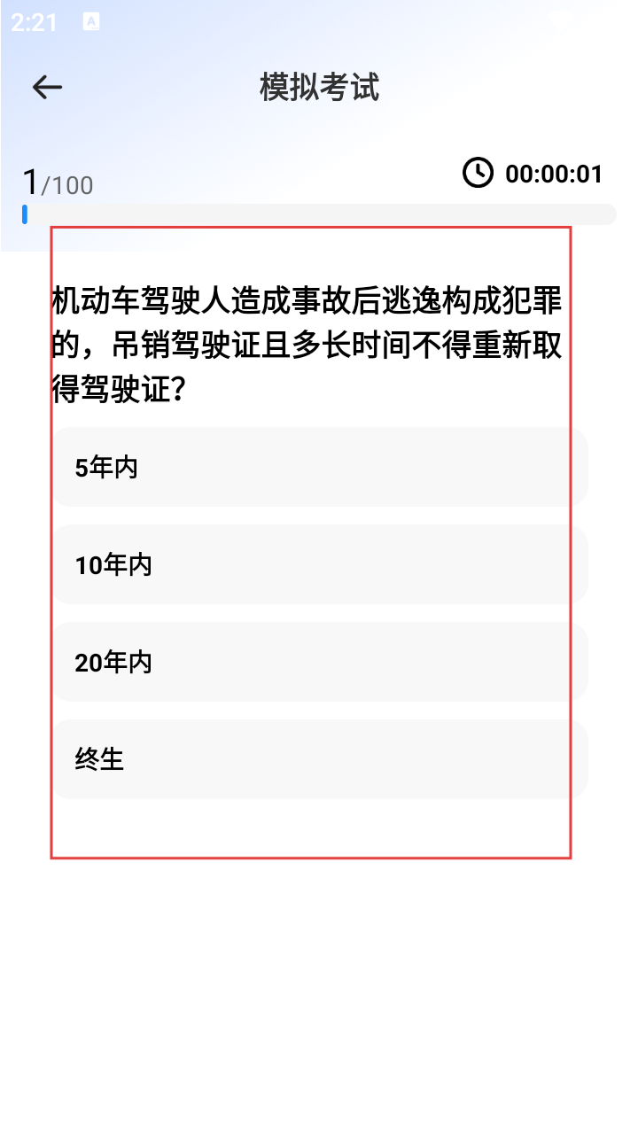 4、练习后进入【模拟考试】,按交规答题,完成测试。