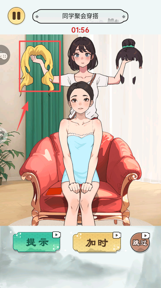 3、在规定时间内,为角色选择合适的发型,点击提示按钮可获得帮助。