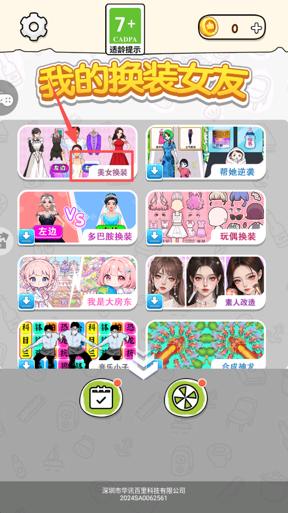 1、进入游戏后,选择不同的换装模式,如“美女换装”等,开始你的换装之旅。