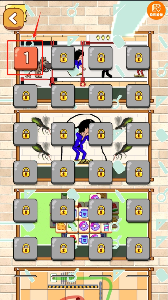 3、然后,点击数字“1”或锁图标,解锁新的关卡或获得额外奖励。