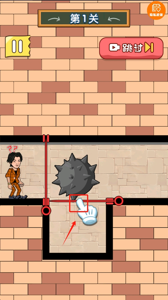 4、最后,点击屏幕上的手套图标,拔掉针条,帮助角色顺利通关。