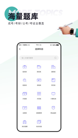 3.1000+考试科目全覆盖,题库覆盖财经、医学、建筑、外语、功能等热门考试科目,紧扣考点,帮助考生顺利通关。