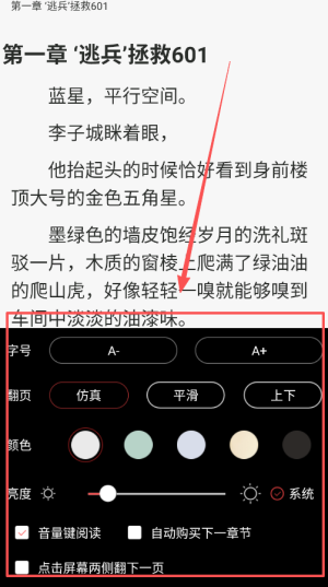 4、阅读设置选项允许用户自由调整界面背景和字体样式,打造最符合个人喜好的阅读环境,让您畅享无阻阅读乐趣。