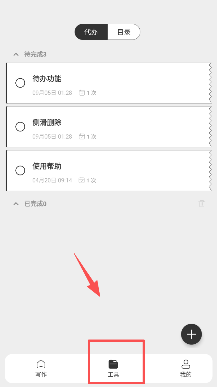 4、点击“工具”按钮,进入工具页面,管理代办事项。