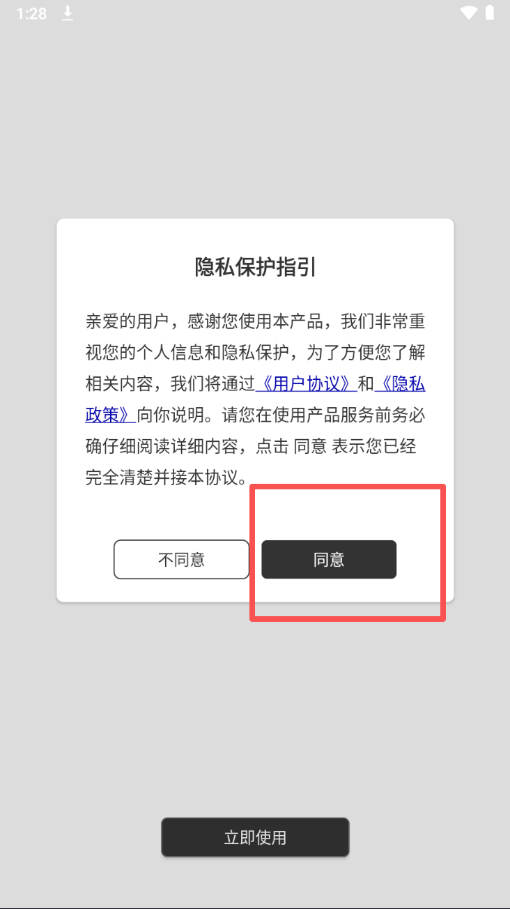 1、阅读并同意隐私保护指引,点击“同意”继续。