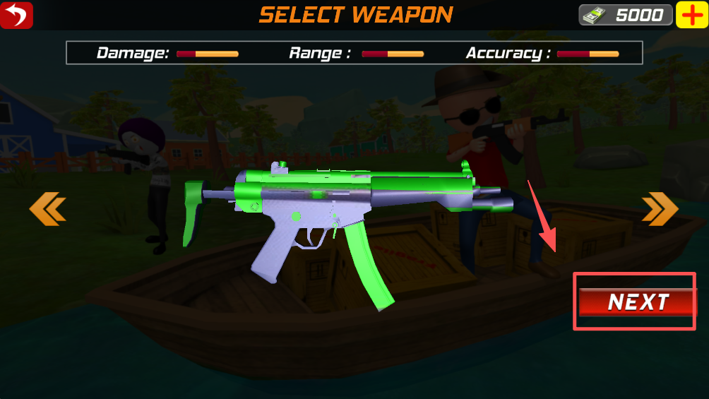 2、在武器选择界面,点击“NEXT”按钮选择你的武器。