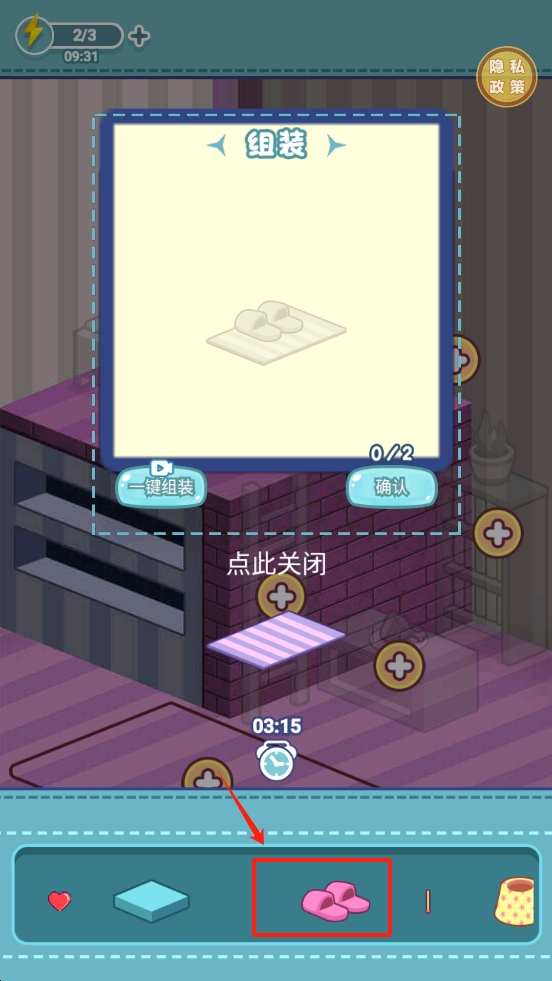 4、根据提示,点击并拖动家具到指定位置进行组装和布置。