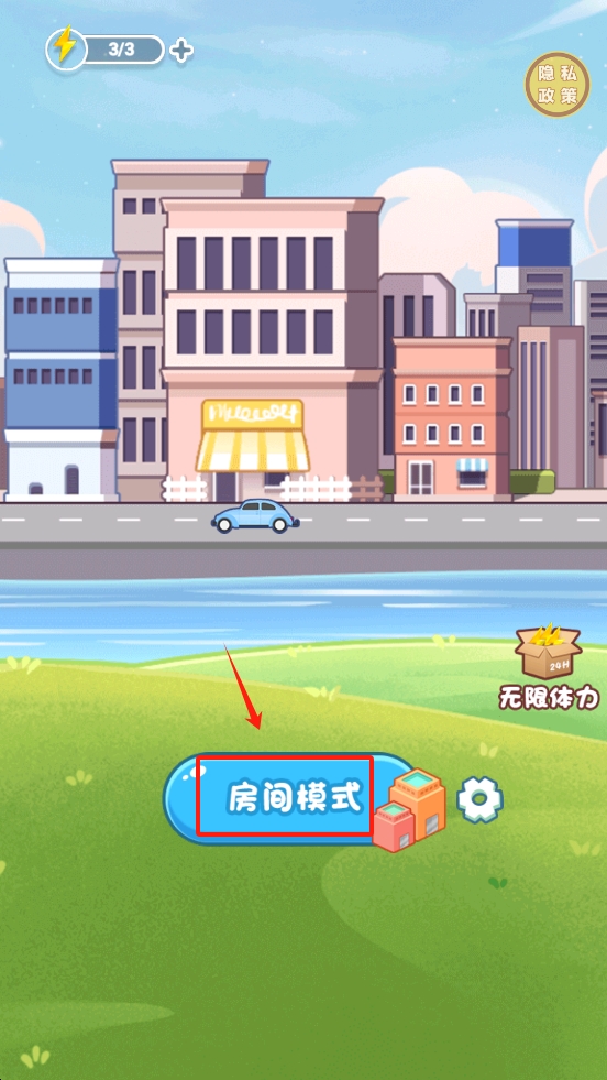 2、在游戏界面下方,点击“房间模式”按钮进入该模式。