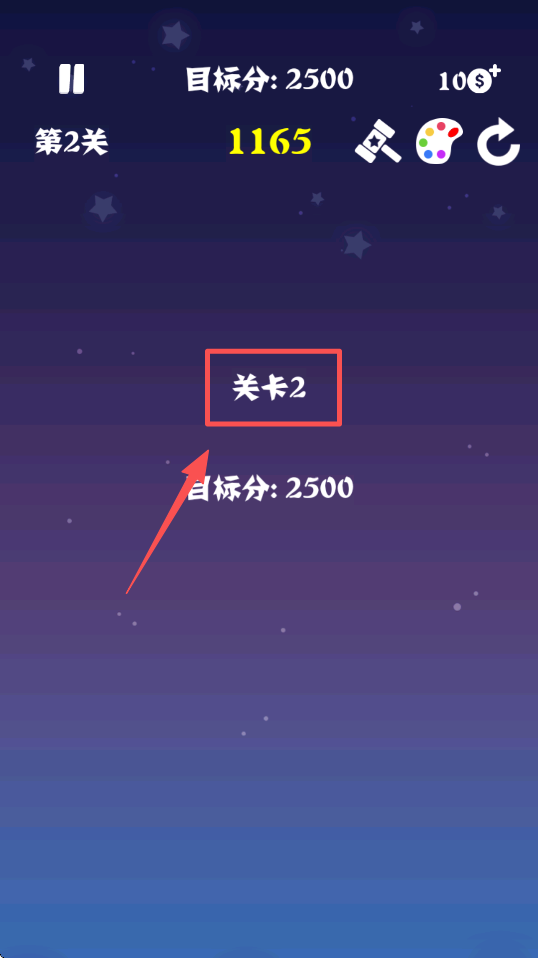4、完成关卡 1 后,进入关卡 2,继续进行星星消除挑战。
