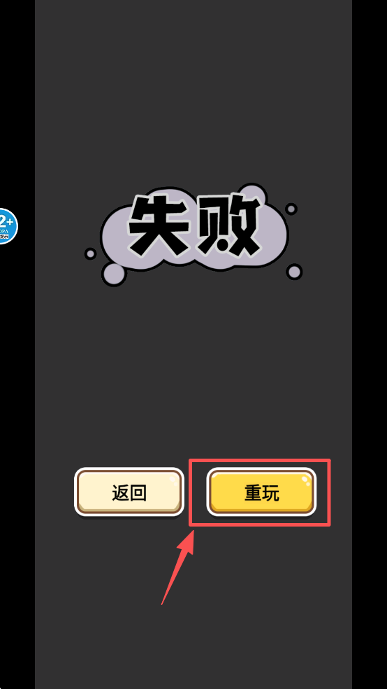 4、如果游戏失败,点击“重玩”按钮再次尝试,直至成功通关。