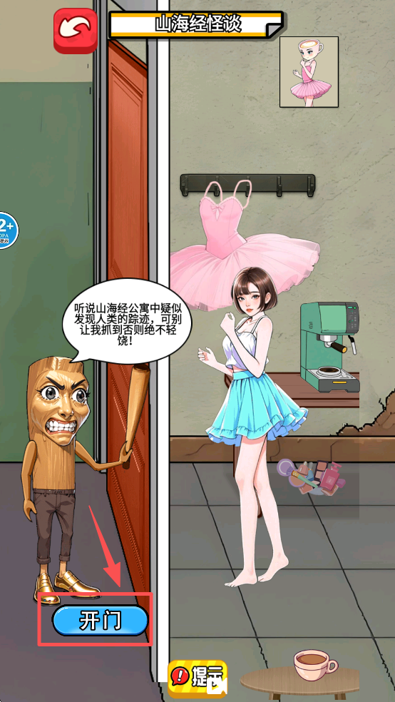 3、在游戏关卡中,点击“开门”按钮与角色互动,推动故事发展。