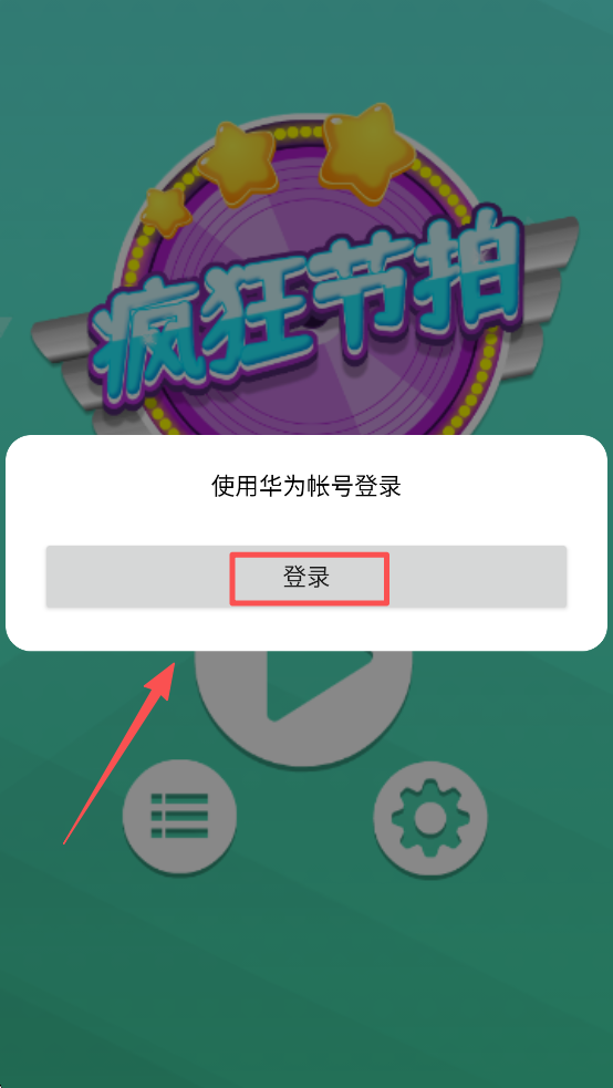 1、点击登录按钮,使用华为账号登录游戏,开始你的音乐之旅。