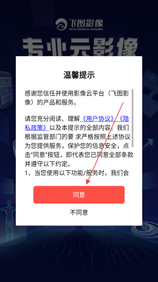 1、打开应用查看协议点击同意。