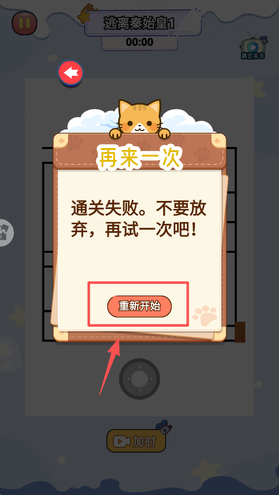 4、如果失败,点击“重新开始”按钮,再次尝试,直到成功逃脱。