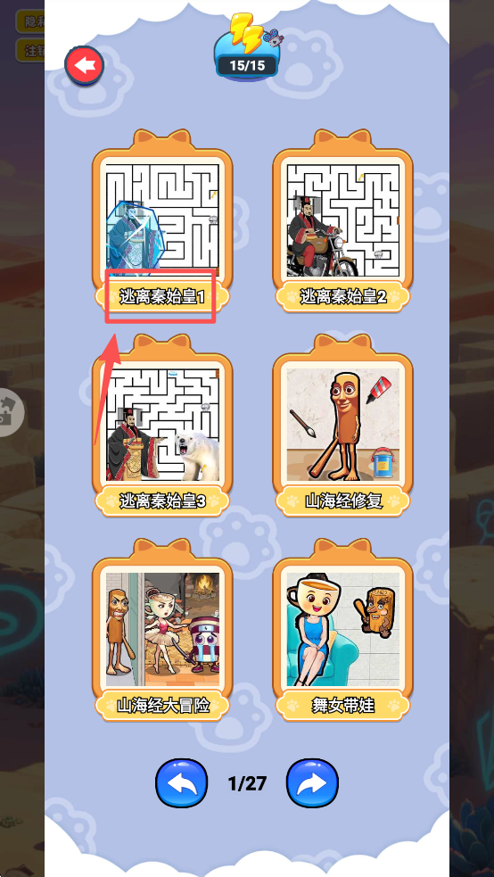 2、在关卡选择界面,点击“逃离秦始皇2”关卡,选择难度,准备挑战。