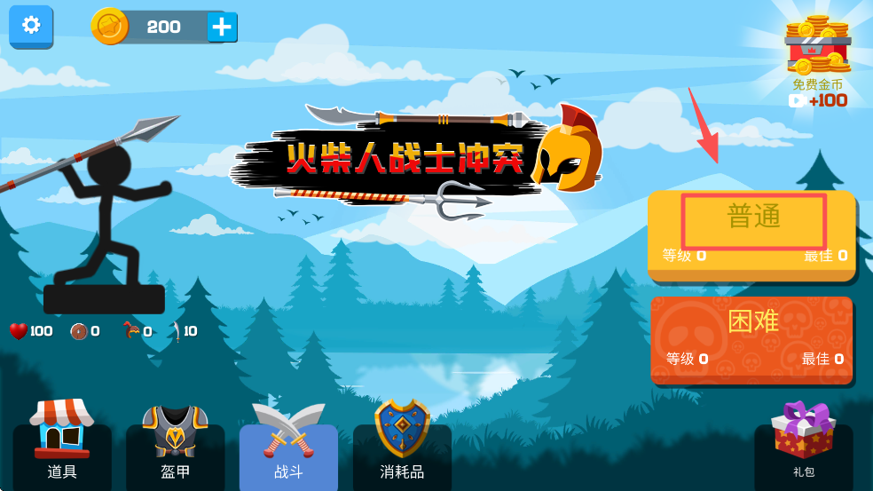 2、点击“普通”或“困难”按钮,根据你的游戏水平选择适合的难度开始游戏。