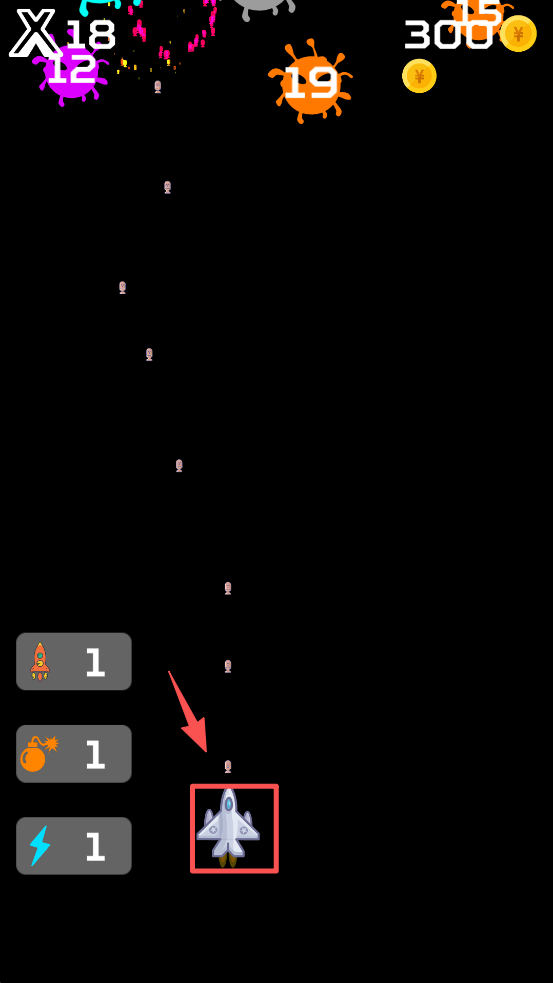 3、然后,通过点击屏幕来控制飞机移动,收集金币和道具以增强实力。