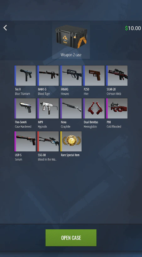 3、游戏操作方法非常简单,只需点击下方的OPENCASE即可开始游戏。