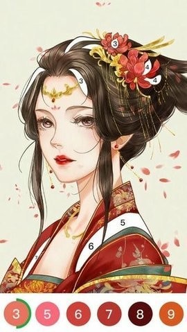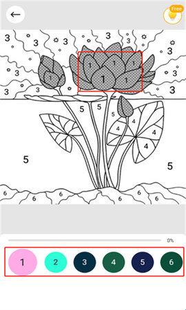 2、进入绘图界面后,用户可以在下方选择与图片中人物相对应的数字颜色进行上色;