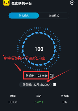 2.打开像素联机,所有人都选择同一条线路(如下图所示),房主记住这个IP,分享给其他玩家。