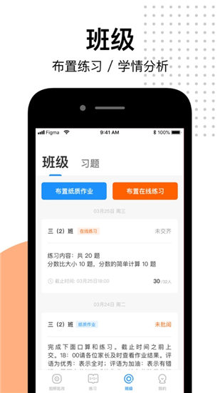 3、班级圈:老师在班级圈布置口算和习题,系统自动完成批改。